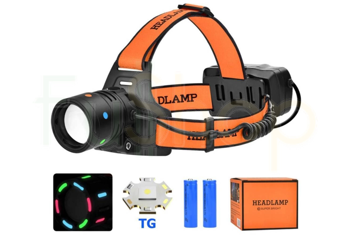 Комплектація: ліхтар T210-TG, кріплення на голову, кабель Type-C, АКБ 18650 - 2 шт.