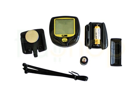 Управление функциями устройства осуществляется с помощью двух кнопок, а данные отображаются на электронном экране: скорость (текущая, средняя и максимальная), время в пути и расстояние, текущее время (в 12 и 24-часовом формате). Также велокомпьютер имеет функции автостарт/автостоп, автоматическая очистка экрана, управления стартом, км/мили, установление размера колес и др.